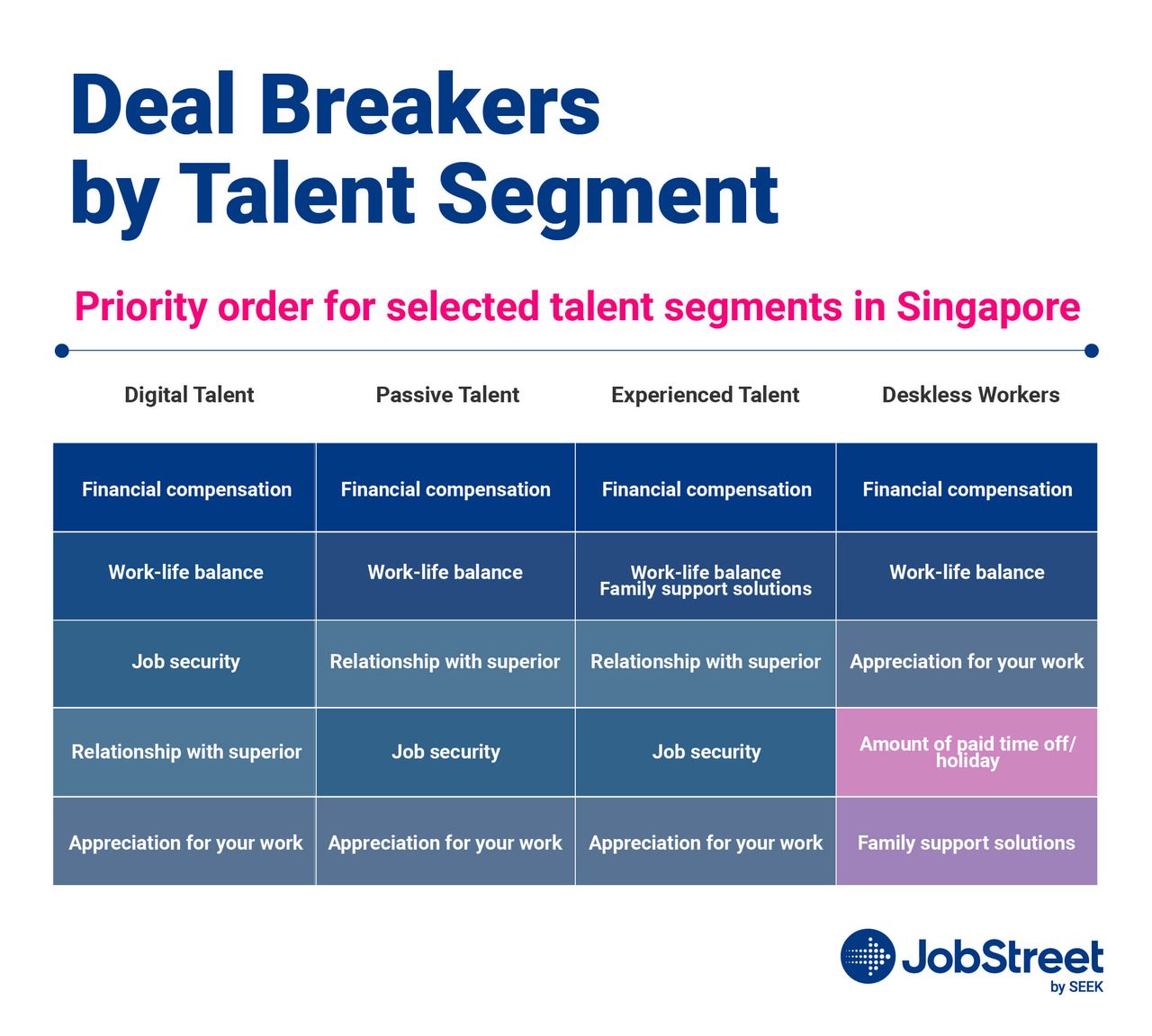 Money is the top deal breaker, but companies should look closely at other factors as well. Compared to their global counterparts, jobseekers in Singapore care more about having a good relationship with their boss when accepting an offer.