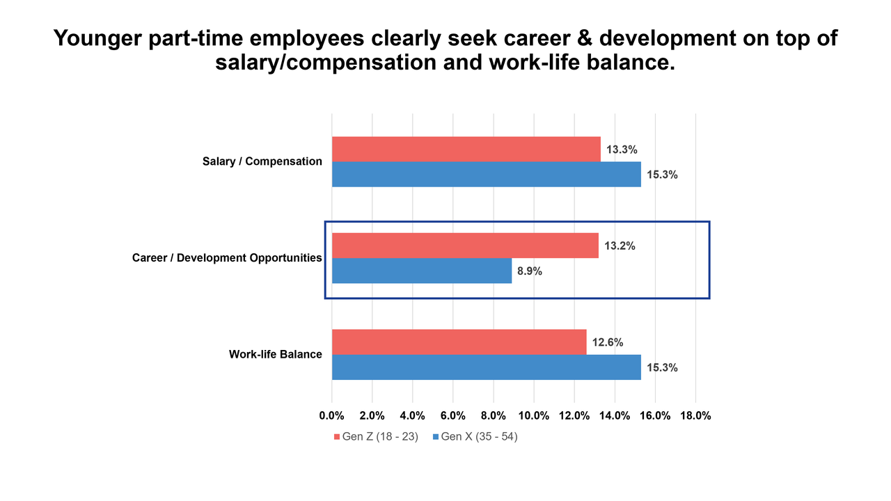 He highlighted that the Laws of Attraction survey showed that while Gen Z look for career growth when considering a new job opportunity, Millennials value freedom and flexibility, and Gen X wants stability.