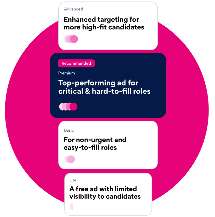 From free Lite ads to greater performance to enhanced targeting, we've built more value into our job ad products to ensure you have access to the right job ads to cater for your businesses' unique hiring needs and budget.